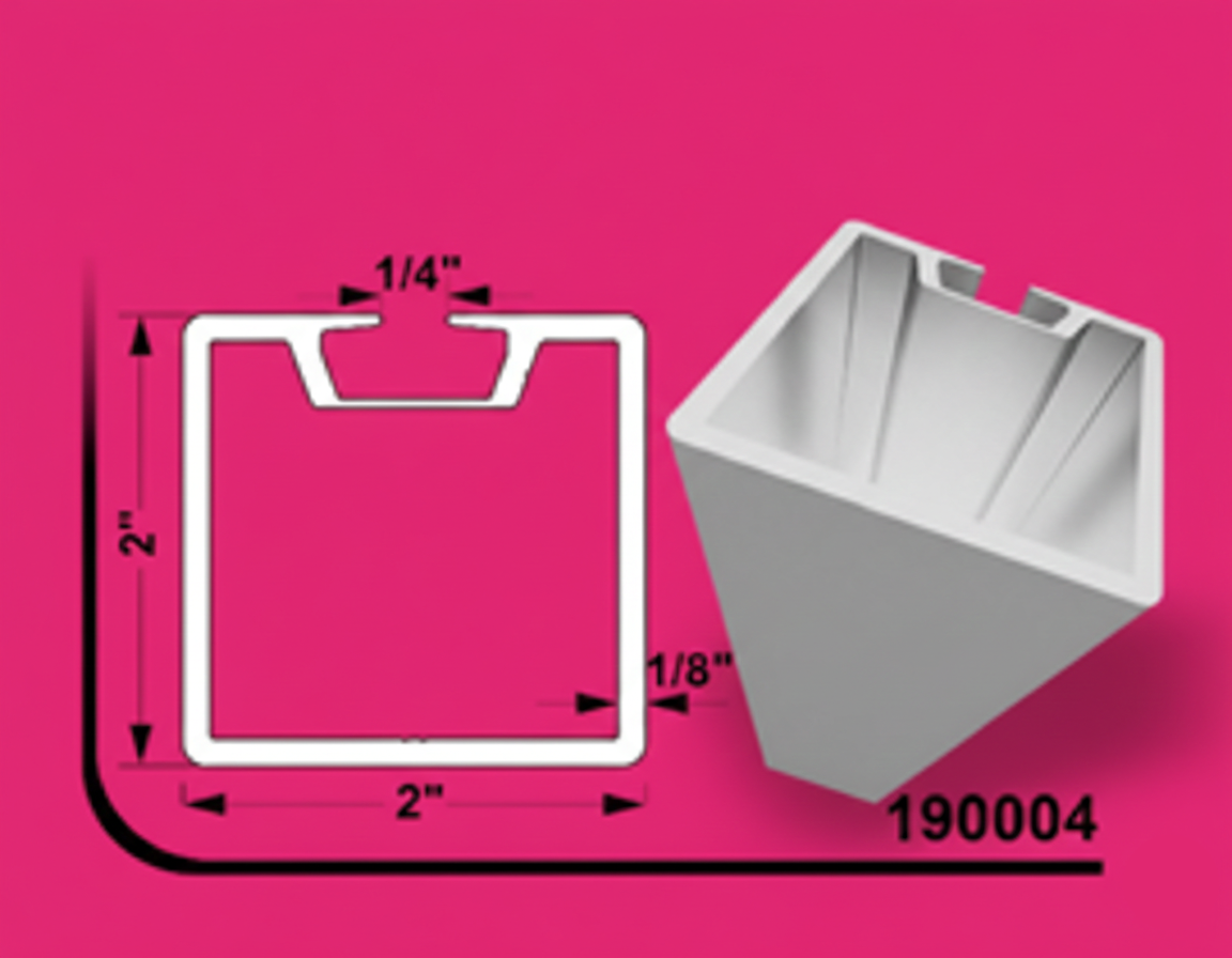 - Sign Frames: The cross-section features internal channels (1/4″ wide on one side as shown in the image dimensions) designed to hold sign panels securely. The extrusion can be cut and assembled to create custom, professional-looking frames for various signage materials like PVC or acrylic.
